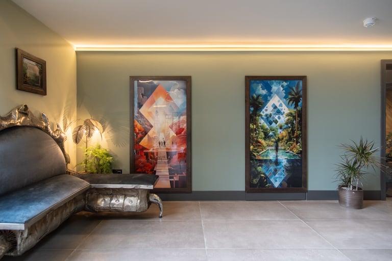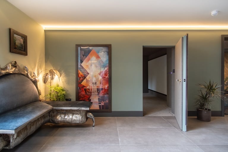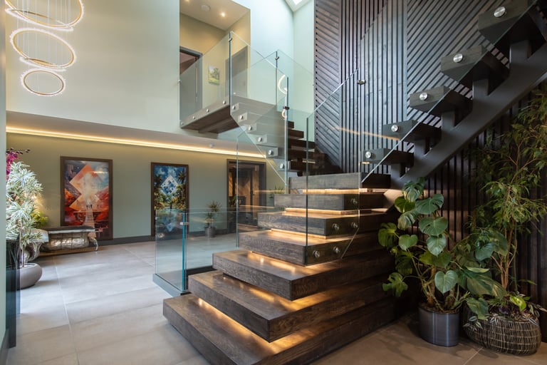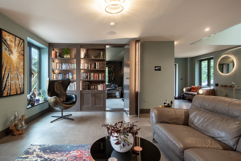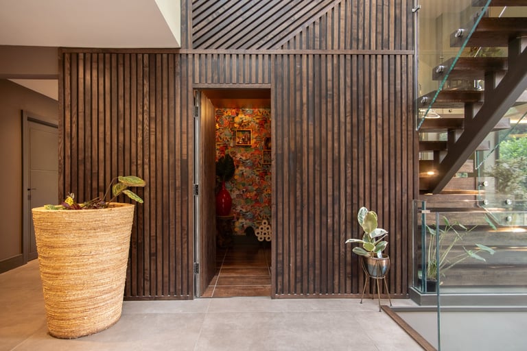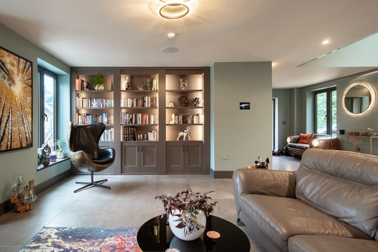 The house basks in natural light, enhanced by Fallon Bespoke Joinery's rich, earthy woodwork, seamlessly blending indoor and outdoor spaces to create a vibrant, organic atmosphere. Even the basement spa benefits from the natural light, offering a tranquil, sun-kissed retreat.